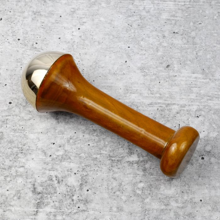 This traditional massage tool has been used in Ayurveda for thousands of years. It has a wooden handle and a dome-shape tip made from kansa metal, which is a mix of copper, tin, and sometimes zinc.