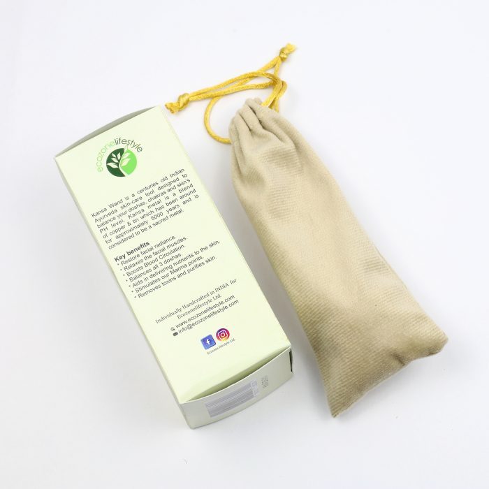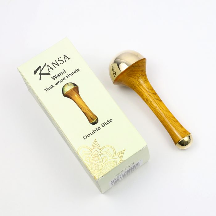This traditional massage tool has been used in Ayurveda for thousands of years. It has a wooden handle and double dome-shape massage tips made from kansa metal (which is a mix of copper, tin, and sometimes zinc), one side for the face and the other side for the body, gateway to a holistic rejuvenation journey.