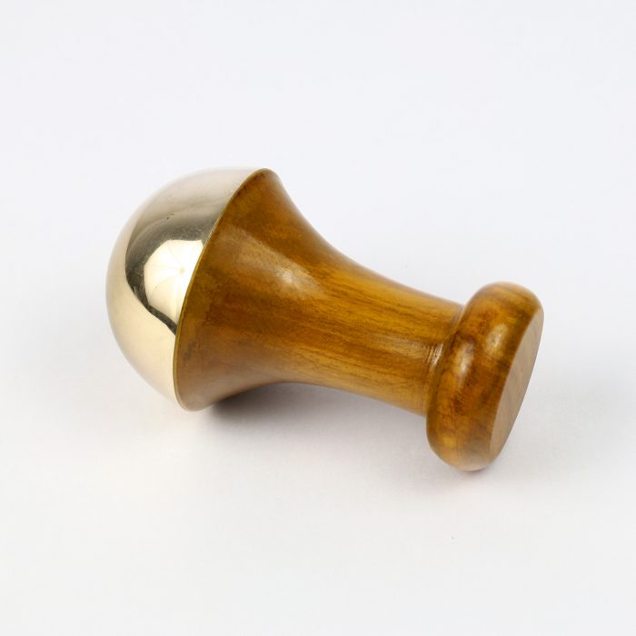 This traditional massage tool has been used in Ayurveda for thousands of years. It has a wooden handle and a dome-shape massage tip made from Kansa metal which is a mix of copper, tin, and sometimes zinc.