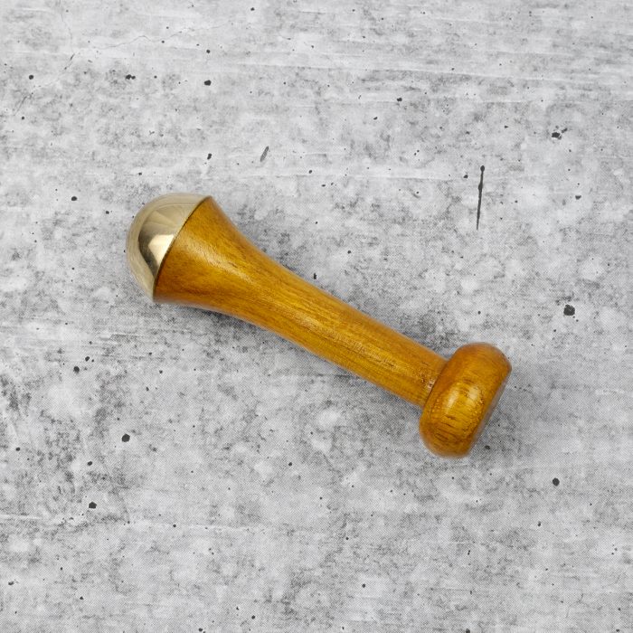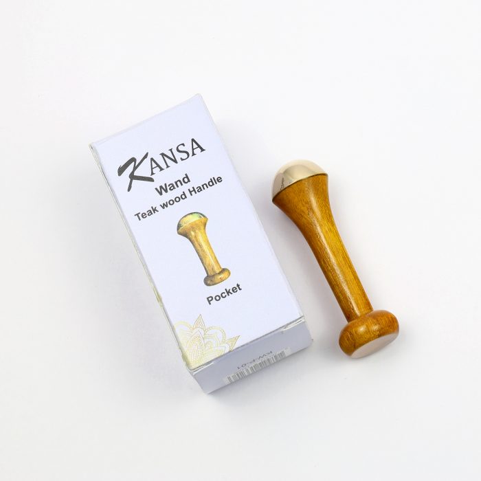 This traditional massage tool has been used in Ayurveda for thousands of years. It has a wooden handle and a dome-shape tip made from kansa metal, which is a mix of copper, tin, and sometimes zinc.